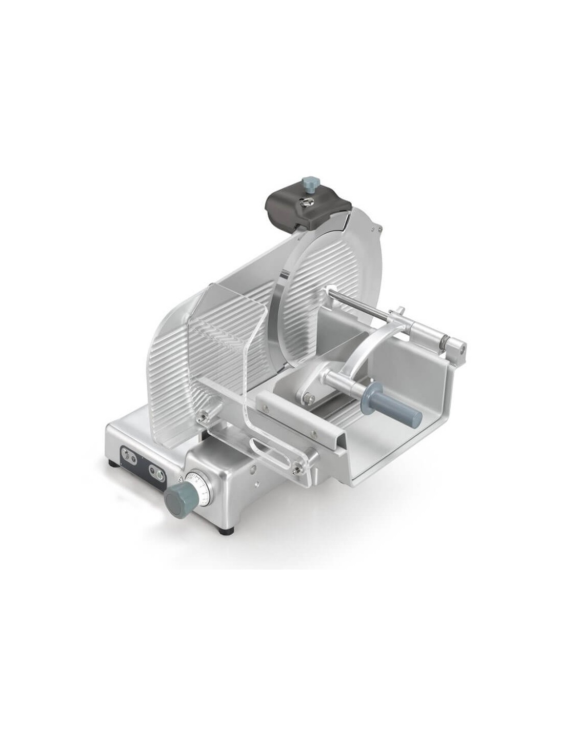 Il cuore di questa affettatrice è il potente motore da 380 W (0,52 Hp), che garantisce una forza di taglio superiore su ogni tipo di prodotto. La robusta lama da 370 mm (15") assicura tagli netti e precisi, con uno spessore regolabile fino a 29 mm.