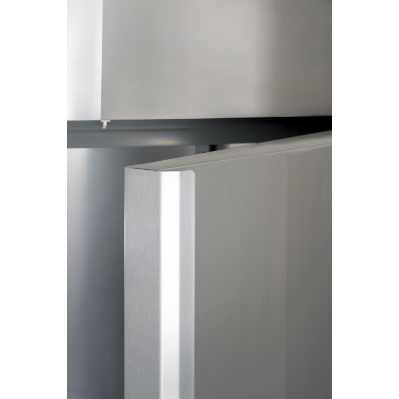 Interno ed esterno in acciaio inox eccetto fondo, soffitto e schienale esterni in acciaio galvanizzato. Angoli interni arrotondati. Isolamento in poliuretano senza CFC, iniettato ad alta pressione. Spessore dell’isolamento: 60 mm. Porte a chiusura automatica con guarnizione magnetica. Pannello di controllo elettronico frontale con sonda NTC. Unità refrigerante a monoblocco estraibile e tropicalizzata di serie (temperatura ambiente +30°C ed umidità relativa del 60%) funzionante con gas R404A/R507. Armadi disponibili anche nella versione senza unità refrigerante. Sbrinamento ed evaporazione dell’acqua di condensa completamente automatici. Piedi in acciaio inox regolabili in altezza. Armadi combinati disponibili esclusivamente con evaporatore all’interno della camera refrigerata. Design compatto.