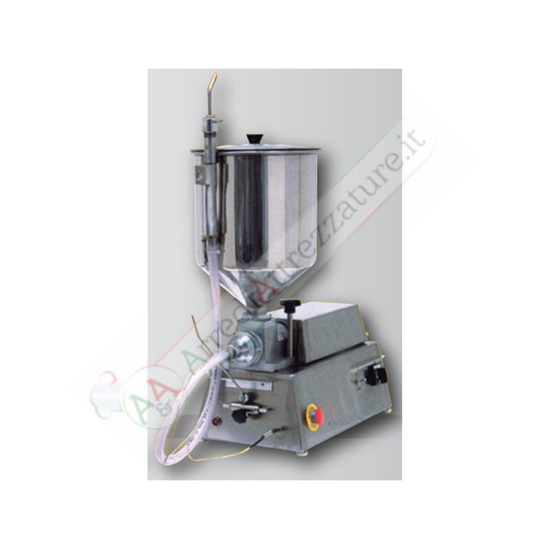 Macchina ideale per riempire a dosatura costante: croissant, krapfen, bignè, cannoli e simili, con notevole risparmio di manodopera.