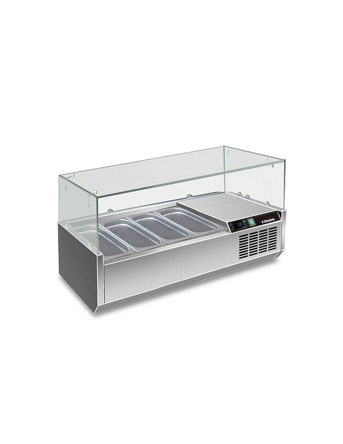 Saladette 2 porte con piano in granito e alzata in Acciaio Inox, predisposta per 5 vaschette GN1/6.