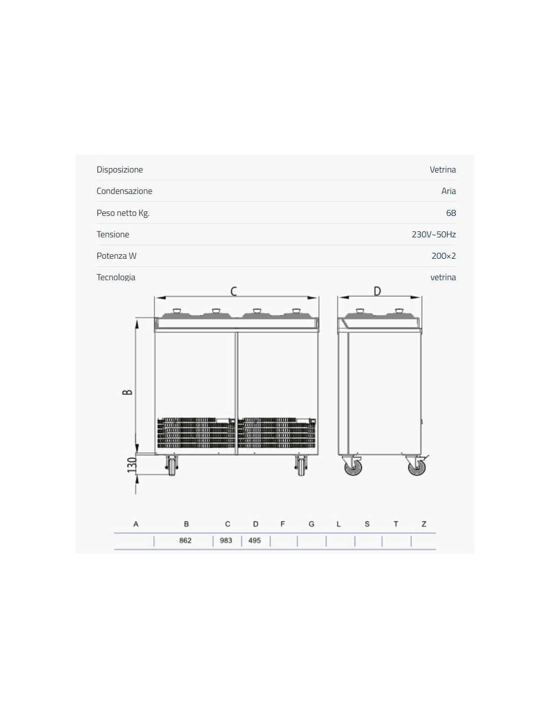 Questa vetrina è ideale per pasticcerie e gelaterie medio piccole grazie alla sue dimensioni contenute.
