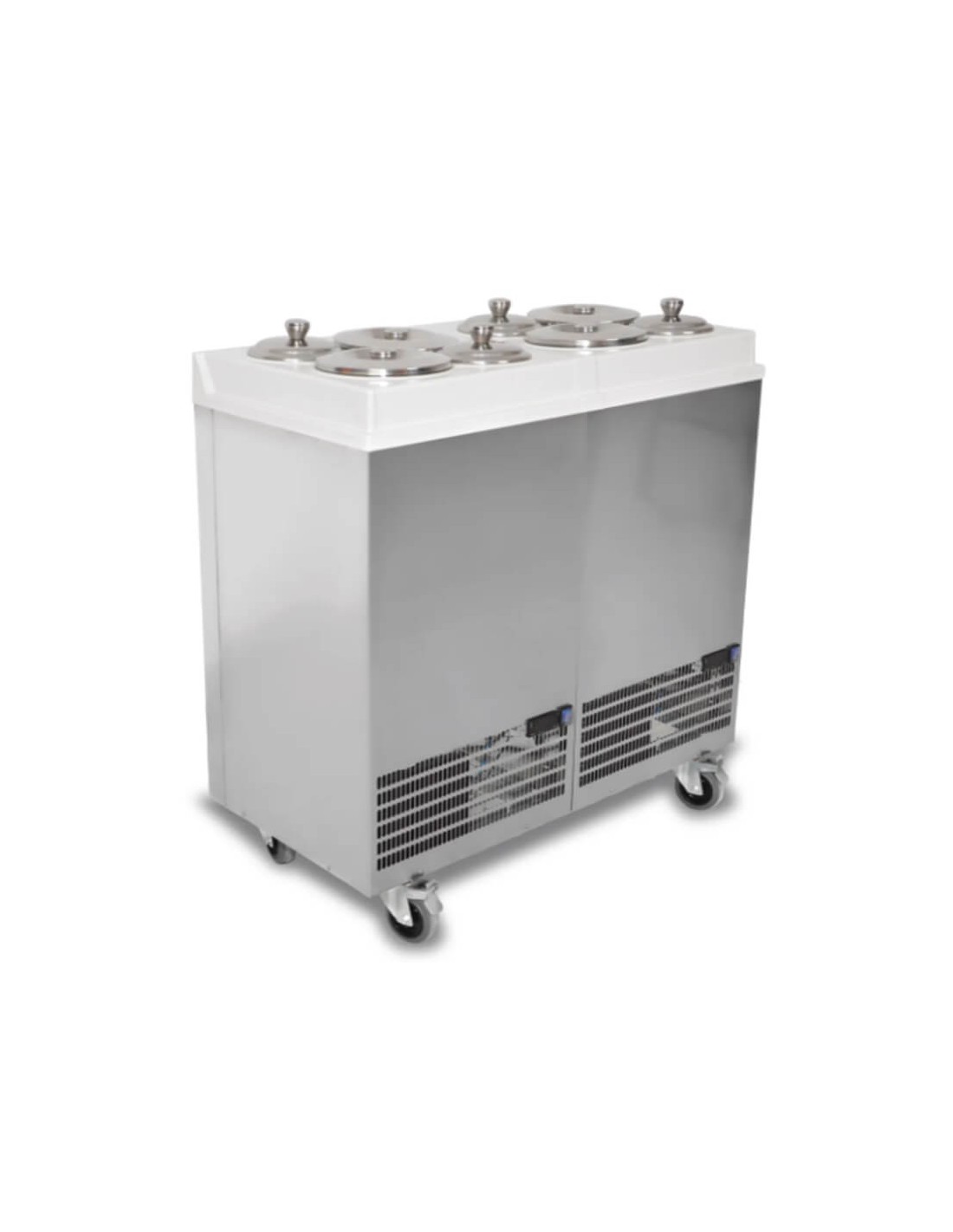 Vetrine per gelato mantecato, su stecco e pasticceria gelata con una capacità di 7 vaschette da 5 litri o 14 vaschette da 2,5 litri.