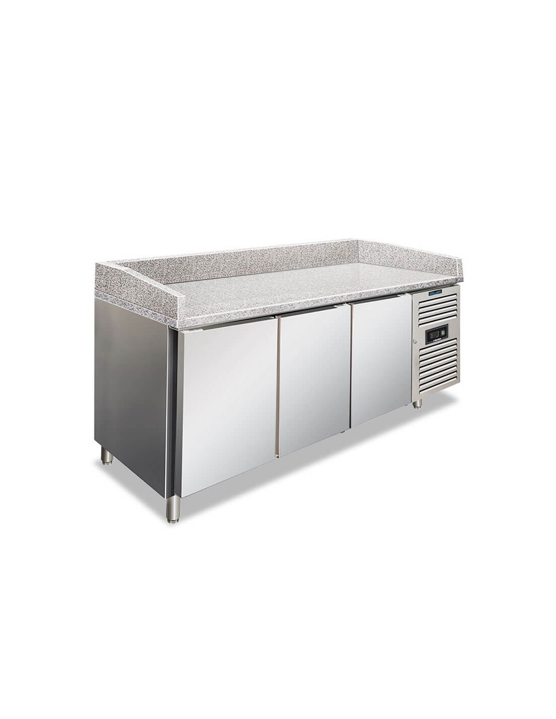 Banco Preparazione Pizza Refrigerato 3 Porte - Piano in Granito, Acciaio Inox, 2020mm Efficienza e Funzionalità per la Tua Pizzeria