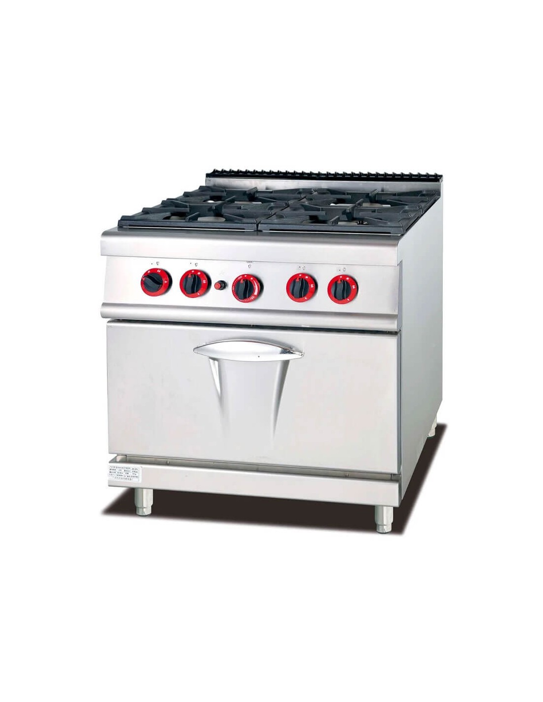 Cucina a Gas Professionale 4 Fuochi con Forno | Acciaio Inox 80x70 cm Potenza 23kW