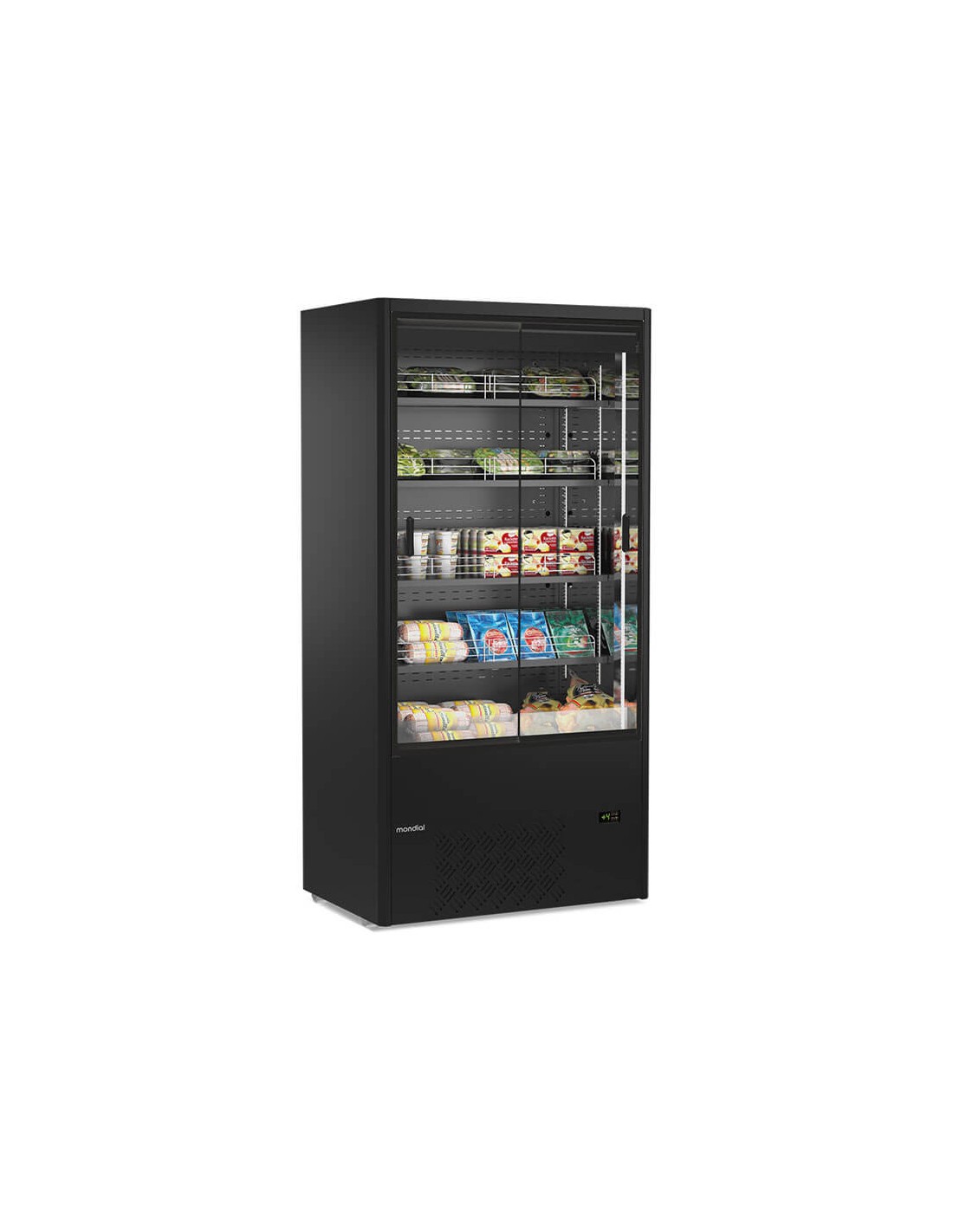 La caratteristica distintiva di questo modello sono le porte scorrevoli, che garantiscono un notevole risparmio energetico e una temperatura interna più stabile rispetto agli espositori aperti.