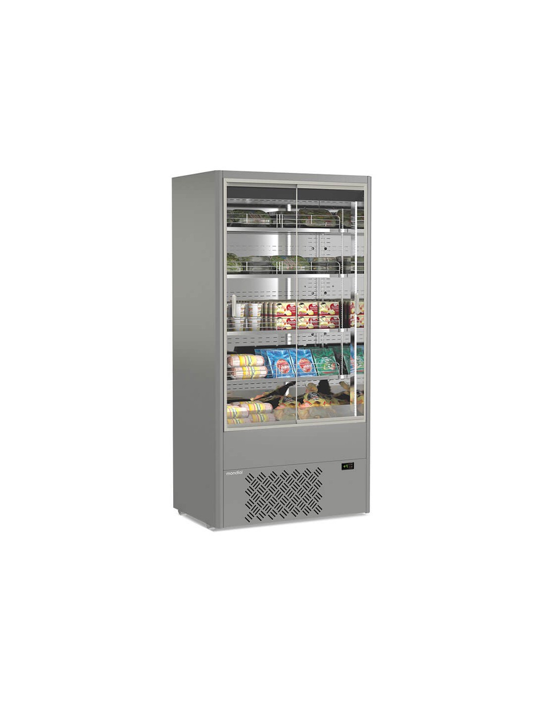 La caratteristica distintiva di questo modello sono le porte scorrevoli, che garantiscono un notevole risparmio energetico e una temperatura interna più stabile rispetto agli espositori aperti.