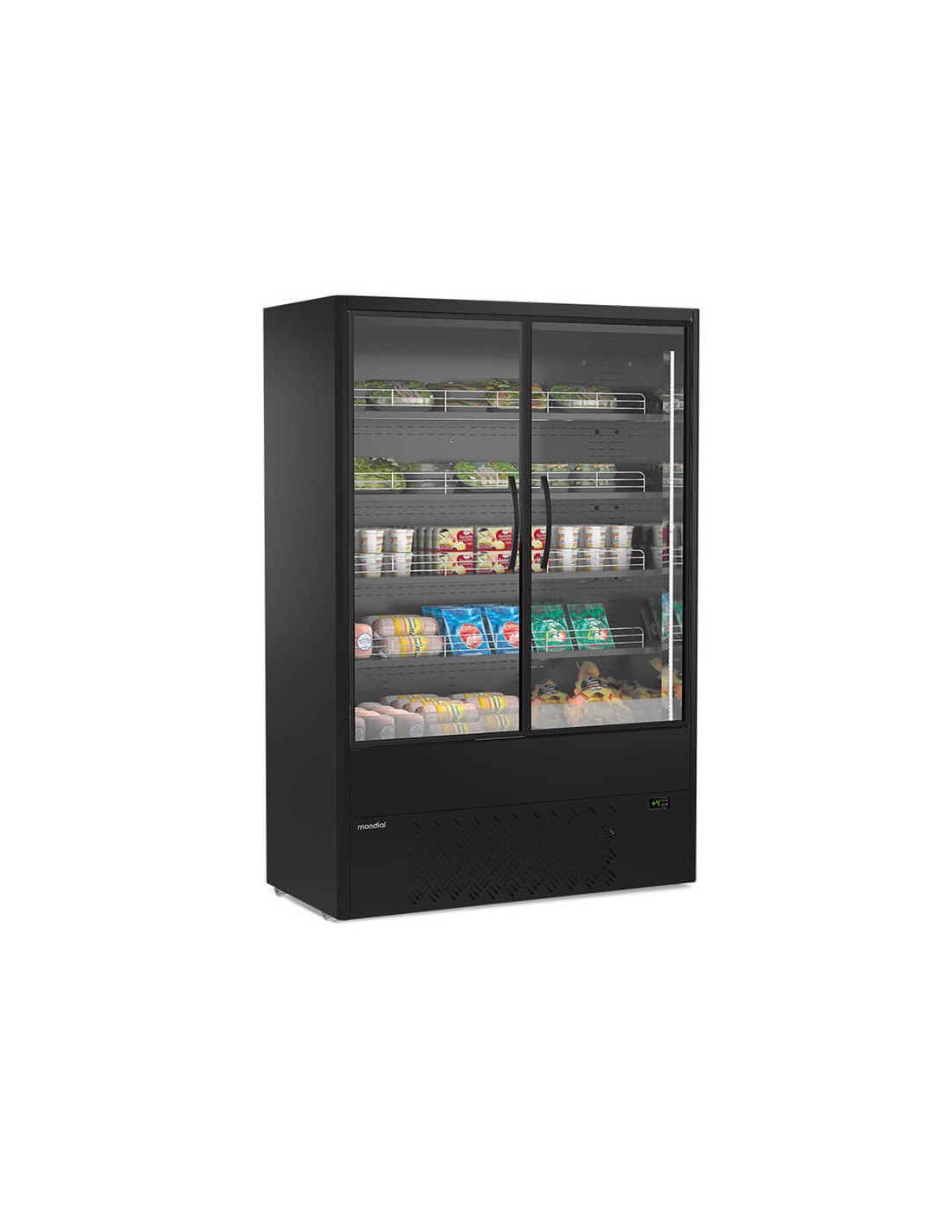 La caratteristica distintiva di questo modello sono le porte battenti, che garantiscono un notevole risparmio energetico e una temperatura interna più stabile rispetto agli espositori aperti.
