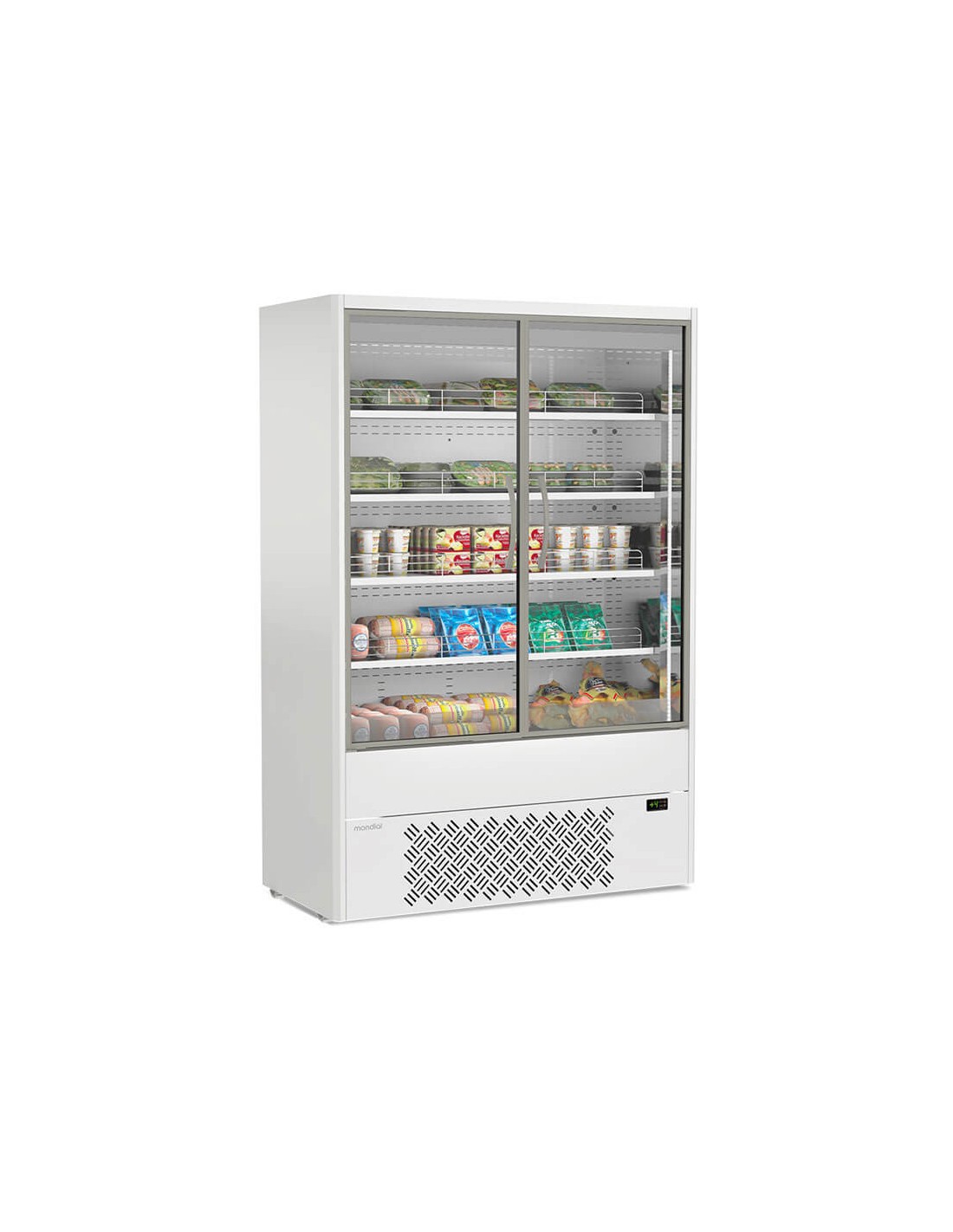 La caratteristica distintiva di questo modello sono le porte battenti, che garantiscono un notevole risparmio energetico e una temperatura interna più stabile rispetto agli espositori aperti.