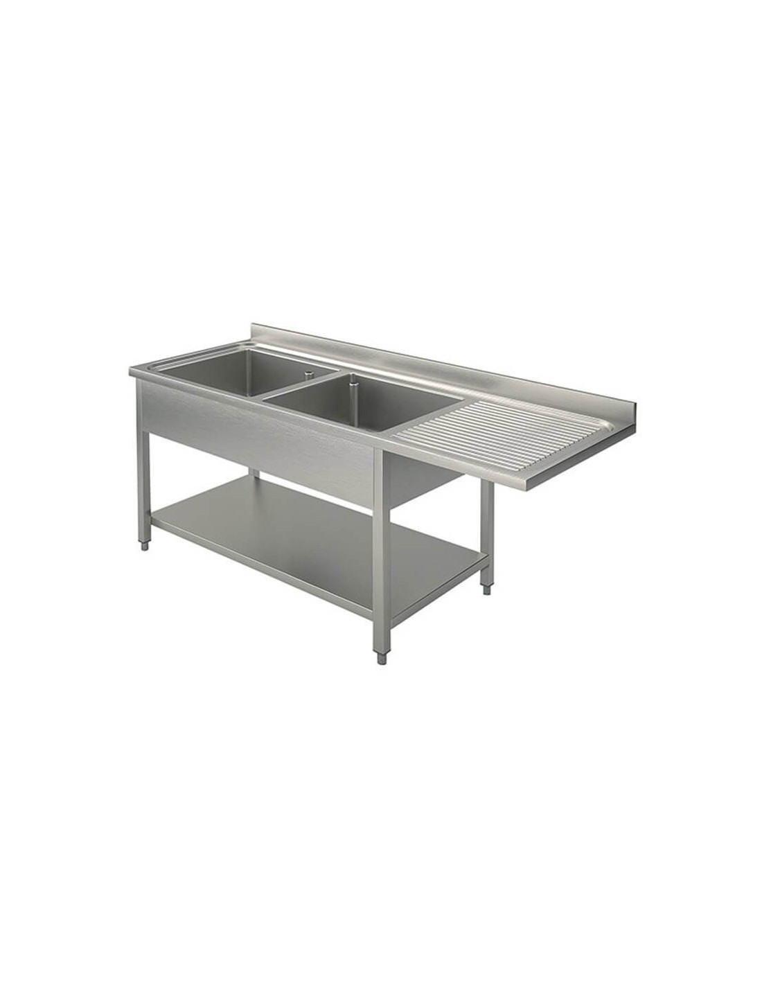 Lavatoio a sbalzo con ripiano inferiore 2 vasche e gocciolatoio a DX