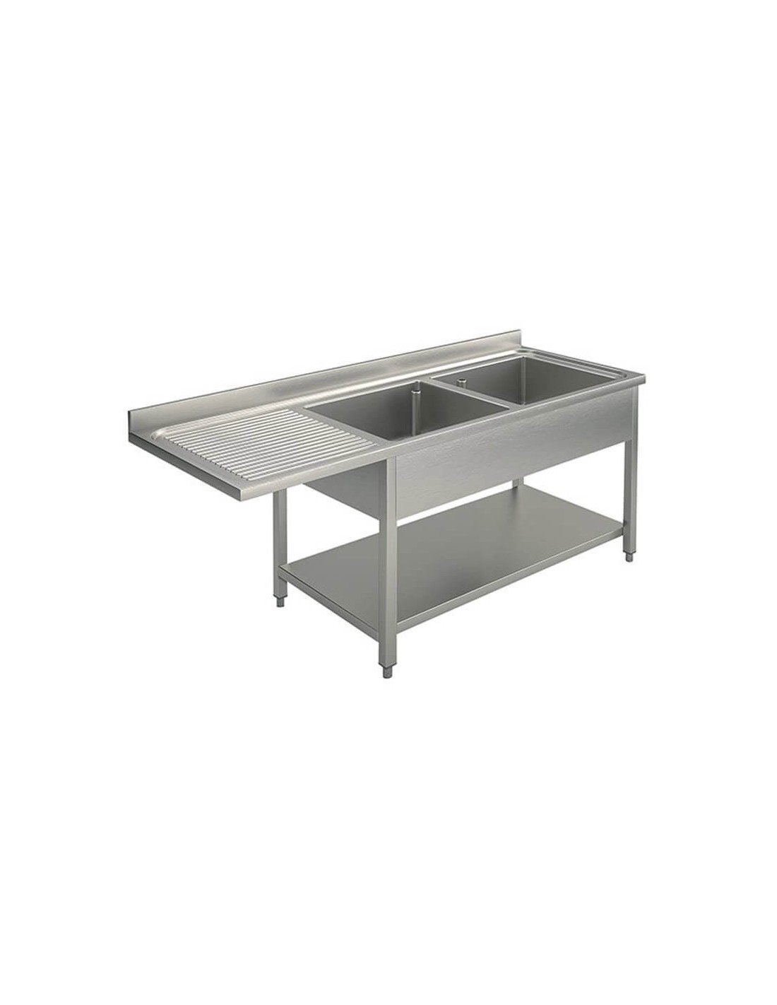 Lavatoio a sbalzo con ripiano inferiore 2 vasche e gocciolatoio a SX