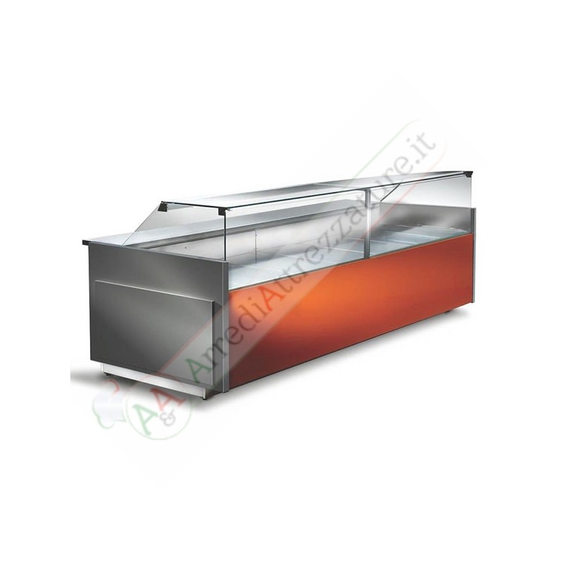 Struttura in Acciaio Inox: Piano di lavoro e piano espositivo robusti e igienici.