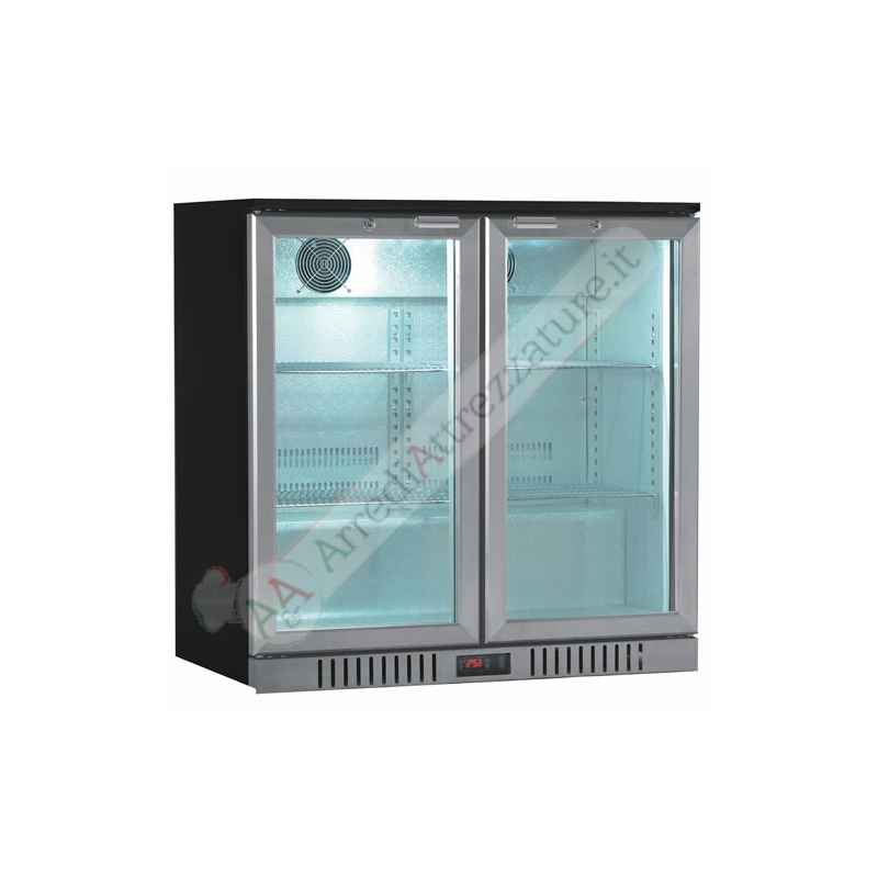 Vetrine refrigerate ventilate per bibite con struttura esterna in acciaio preverniciato color nero, interno in alluminio martellato.