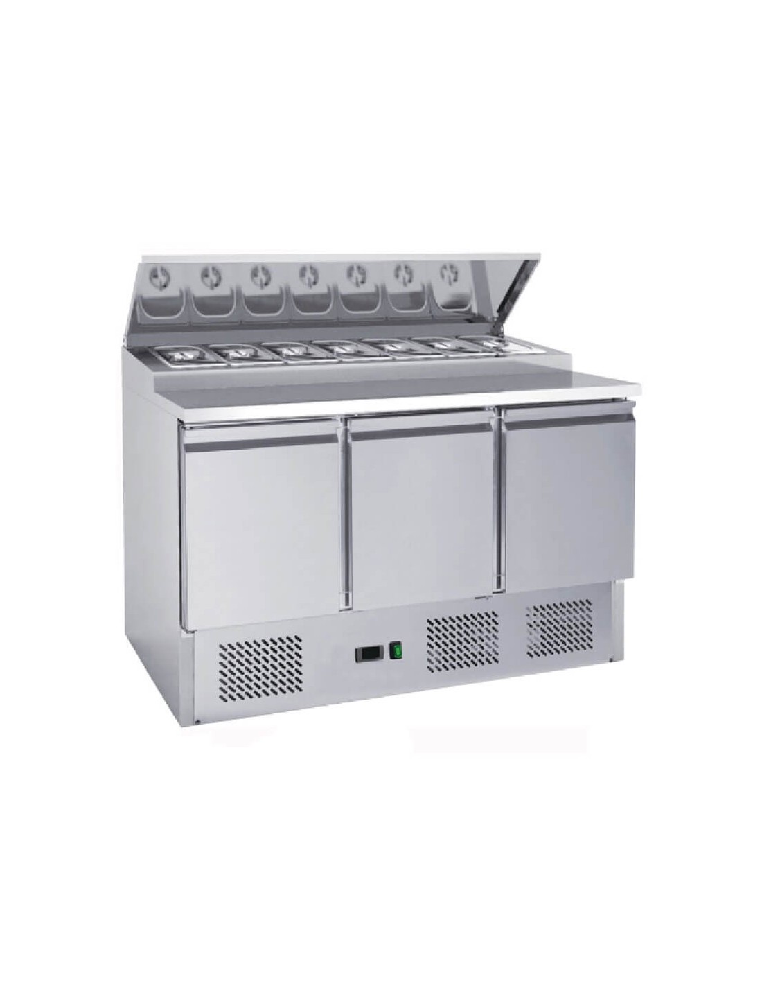 Banco Frigo Saladette Professionale 136,5x70 cm - Acciaio Inox 3 Porte - 8 Vaschette GN 1/6