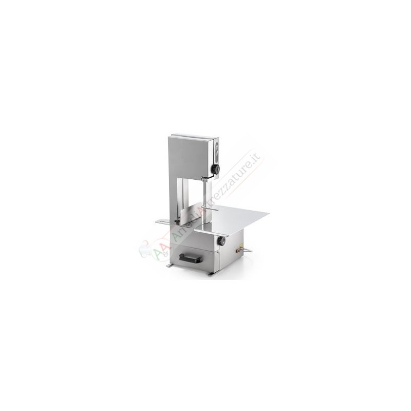 Segaossa professionale perfetto per tagliare qualsiasi tipo di carne. Questo segaossa con una struttura in acciaio inox monta delle lame temperate da 16 mm per taglio di ossa, congelato e fresco.