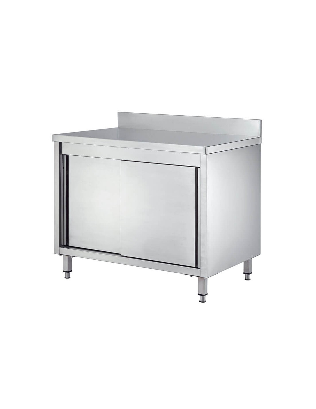 Tavolo inox armadiato alzatina e ante scorrevoli 2000x600x950(h) mm
