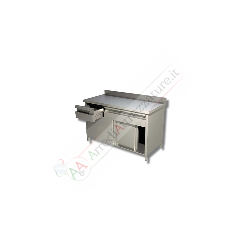 Caratteristiche:dimensioni: 180x60x90 cmmateriale: Acciaio inox2 ante scorrevoli con cassettiera in linea prof 60